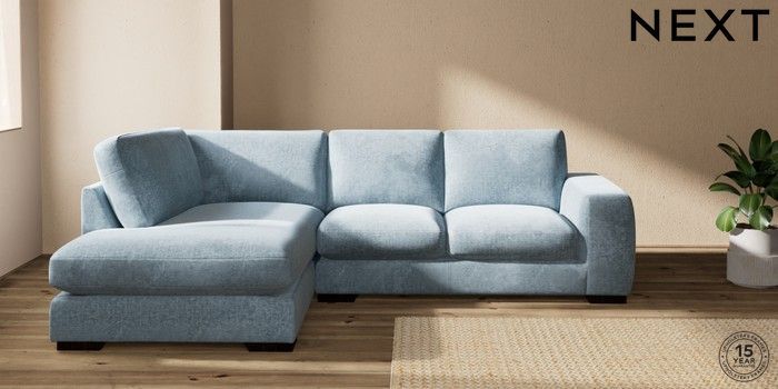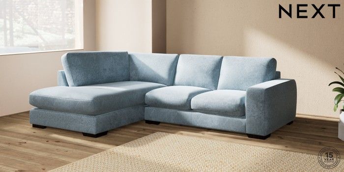 7.2.10 Houghton Deep Sit Medium Corner Chaise - Left Hand Plush Chenille Light Blue Large Square Angle - Dark | Made Click here to use our website with more accessibility support, for example screen readers