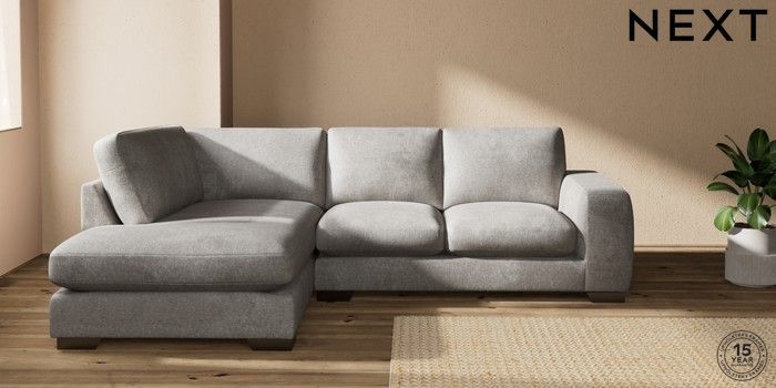 7.2.10 Houghton Deep Sit Medium Corner Chaise - Left Hand Plush Chenille Light Grey Large Square Angle - Gunmetal | Made Click here to use our website with more accessibility support, for example screen readers