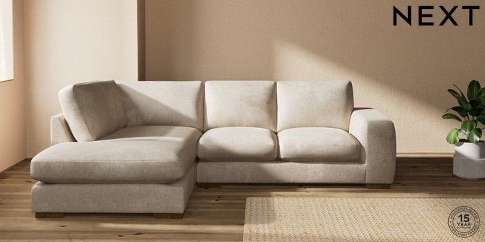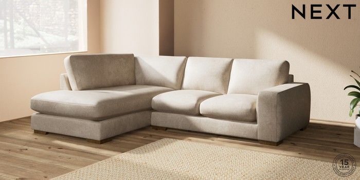 7.2.10 Houghton Deep Sit Medium Corner Chaise - Left Hand Plush Chenille Light Natural Large Square Angle - Mid | Made Click here to use our website with more accessibility support, for example screen readers