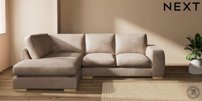 7.2.10 Houghton Deep Sit Medium Corner Chaise - Left Hand Plush Chenille Mid Natural Large Square Angle - Light | Made Click here to use our website with more accessibility support, for example screen readers