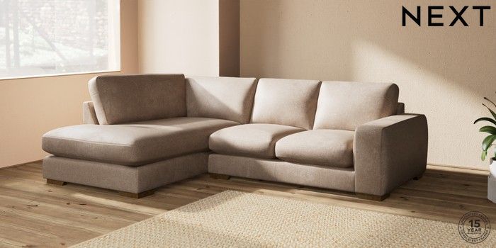 7.2.10 Houghton Deep Sit Medium Corner Chaise - Left Hand Plush Chenille Mid Natural Large Square Angle - Mid | Made Click here to use our website with more accessibility support, for example screen readers