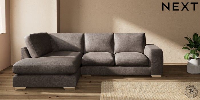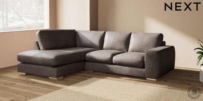 7.2.10 Houghton Deep Sit Medium Corner Chaise - Left Hand Plush Chenille Mink Brown Large Square Angle - Chrome Metal | Made Click here to use our website with more accessibility support, for example screen readers