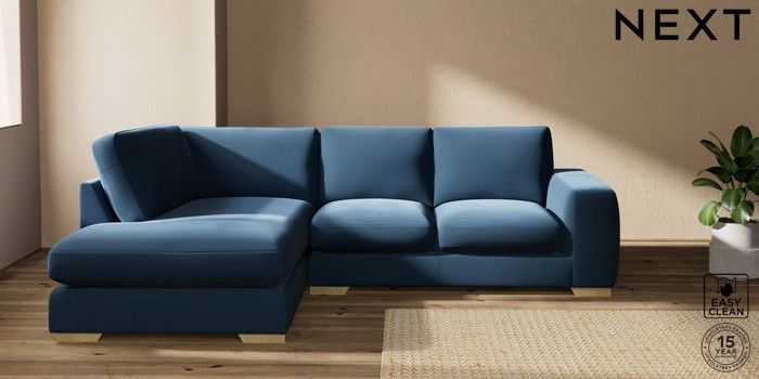7.2.10 Houghton Deep Sit Medium Corner Chaise - Left Hand Plush Velvet Easy Clean Airforce Blue Large Square Angle - Light | Made Click here to use our website with more accessibility support, for example screen readers