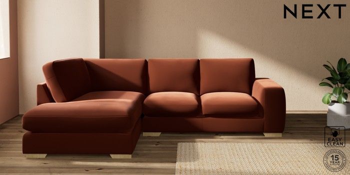 7.2.10 Houghton Deep Sit Medium Corner Chaise - Left Hand Plush Velvet Easy Clean Ginger Orange Large Square Angle - Light | Made Click here to use our website with more accessibility support, for example screen readers