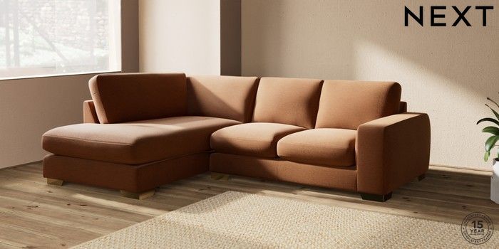 7.2.10 Houghton Deep Sit Medium Corner Chaise - Left Hand Ripple Chenille Mid Rust Brown Large Square Angle - Brushed Brass | Made Click here to use our website with more accessibility support, for example screen readers