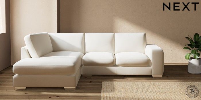 7.2.10 Houghton Deep Sit Medium Corner Chaise - Left Hand Ripple Chenille Oyster Large Square Angle - Chrome Metal | Made Click here to use our website with more accessibility support, for example screen readers