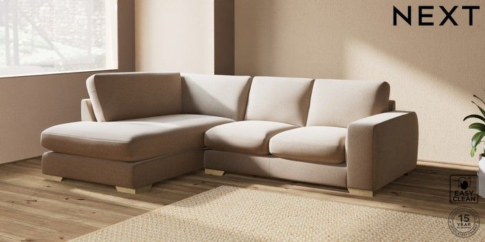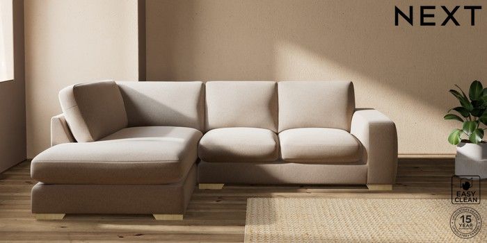 7.2.10 Houghton Deep Sit Medium Corner Chaise - Left Hand Tweedy Blend Easy Clean Light Dove Natural Large Square Angle - Light | Made Click here to use our website with more accessibility support, for example screen readers