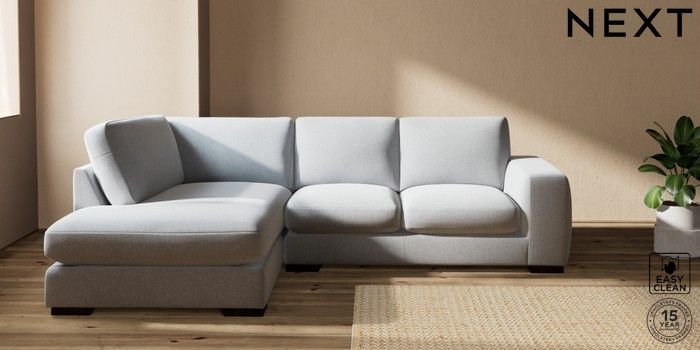7.2.10 Houghton Deep Sit Medium Corner Chaise - Left Hand Tweedy Blend Easy Clean Light Silver Grey Large Square Angle - Dark | Made Click here to use our website with more accessibility support, for example screen readers