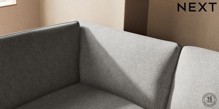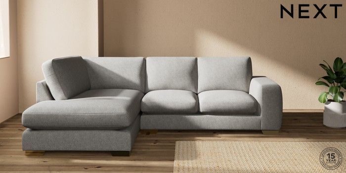 7.2.10 Houghton Deep Sit Medium Corner Chaise - Left Hand Tweedy Chenille Mid Grey Large Square Angle - Brushed Brass | Made Click here to use our website with more accessibility support, for example screen readers