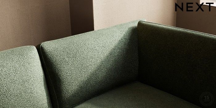 7.2.10 Houghton Deep Sit Medium Corner Chaise - Right Hand Boucle Chenille Dark Moss Green Large Square Angle - Chrome Metal | Made Click here to use our website with more accessibility support, for example screen readers