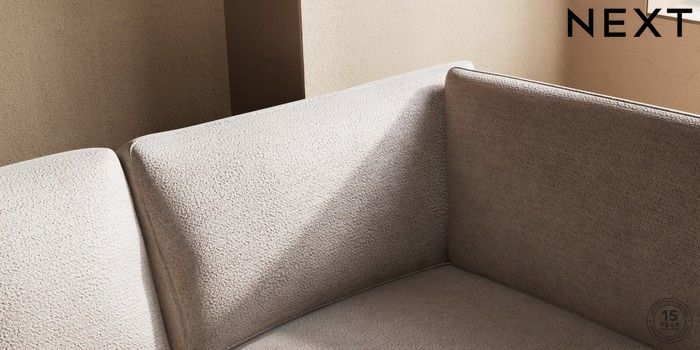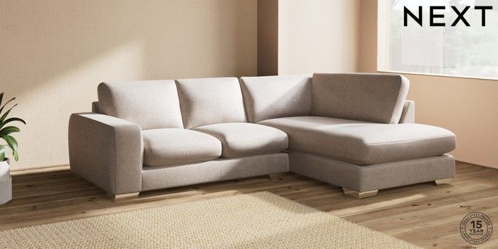 7.2.10 Houghton Deep Sit Medium Corner Chaise - Right Hand Boucle Chenille Light Natural Large Square Angle - Chrome Metal | Made Click here to use our website with more accessibility support, for example screen readers