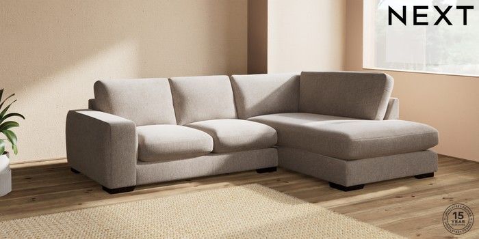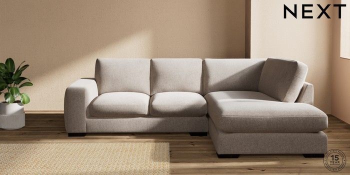 7.2.10 Houghton Deep Sit Medium Corner Chaise - Right Hand Chunky Chenille Light Dove Large Square Angle - Dark | Made Click here to use our website with more accessibility support, for example screen readers