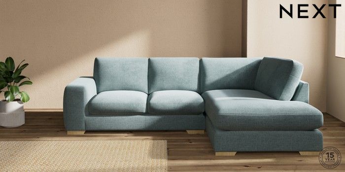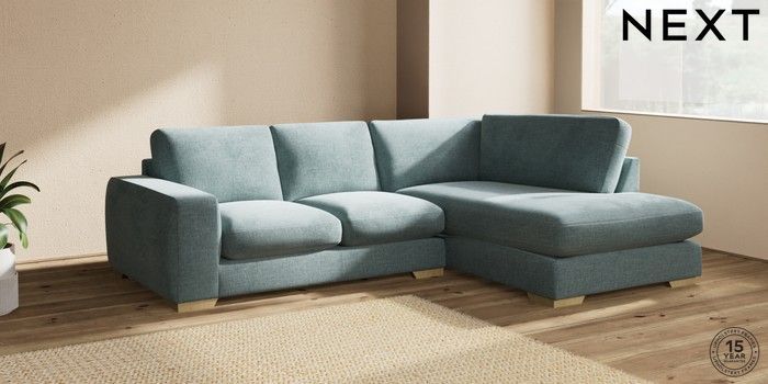 7.2.10 Houghton Deep Sit Medium Corner Chaise - Right Hand Chunky Chenille Light Teal Green Large Square Angle - Light | Made Click here to use our website with more accessibility support, for example screen readers