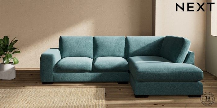 7.2.10 Houghton Deep Sit Medium Corner Chaise - Right Hand Chunky Chenille Mid Teal Green Large Square Angle - Dark | Made Click here to use our website with more accessibility support, for example screen readers