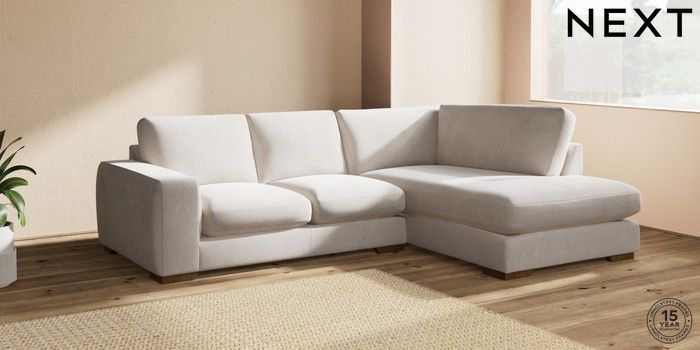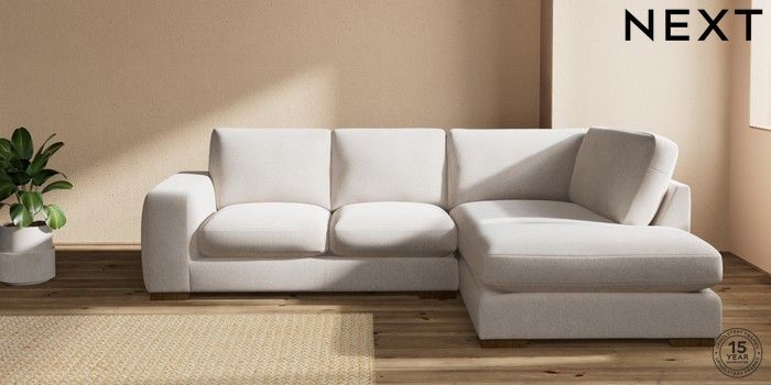 7.2.10 Houghton Deep Sit Medium Corner Chaise - Right Hand Chunky Chenille Oyster Large Square Angle - Mid | Made Click here to use our website with more accessibility support, for example screen readers