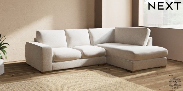 7.2.10 Houghton Deep Sit Medium Corner Chaise - Right Hand Chunky Marl Oyster Large Square Angle - Mid | Made Click here to use our website with more accessibility support, for example screen readers