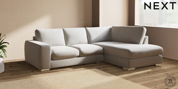 7.2.10 Houghton Deep Sit Medium Corner Chaise - Right Hand Chunky Weave Dove Grey Large Square Angle - Chrome Metal | Made Click here to use our website with more accessibility support, for example screen readers