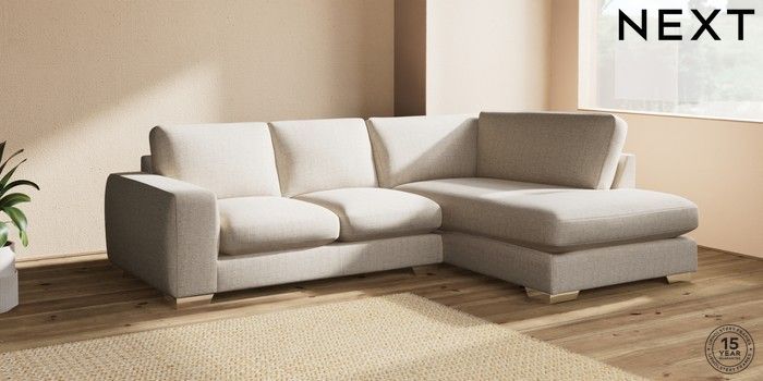 7.2.10 Houghton Deep Sit Medium Corner Chaise - Right Hand Chunky Weave Mid Natural Large Square Angle - Chrome Metal | Made Click here to use our website with more accessibility support, for example screen readers