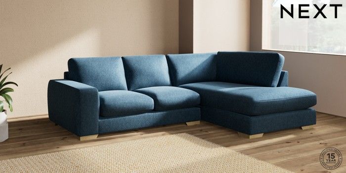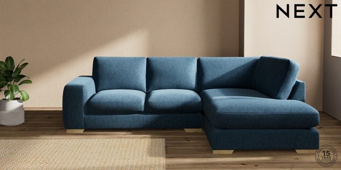 7.2.10 Houghton Deep Sit Medium Corner Chaise - Right Hand Cotswold Chenille Dark Blue Large Square Angle - Light | Made Click here to use our website with more accessibility support, for example screen readers