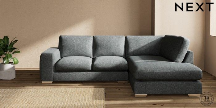 7.2.10 Houghton Deep Sit Medium Corner Chaise - Right Hand Cotswold Chenille Dark Grey Large Square Angle - Chrome Metal | Made Click here to use our website with more accessibility support, for example screen readers