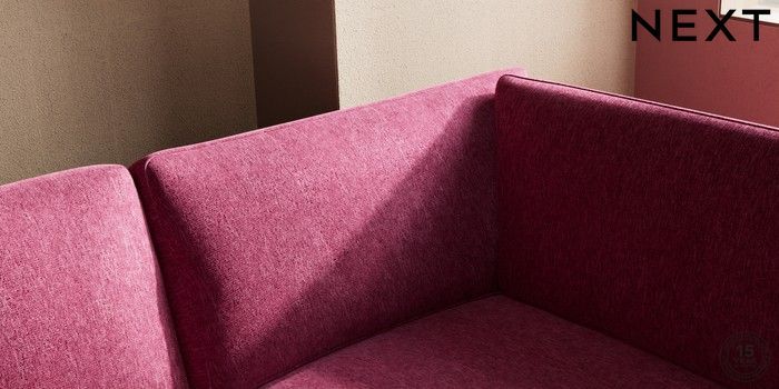 7.2.10 Houghton Deep Sit Medium Corner Chaise - Right Hand Cotswold Chenille Dark Raspberry Pink Large Square Angle - Brushed Brass | Made Click here to use our website with more accessibility support, for example screen readers