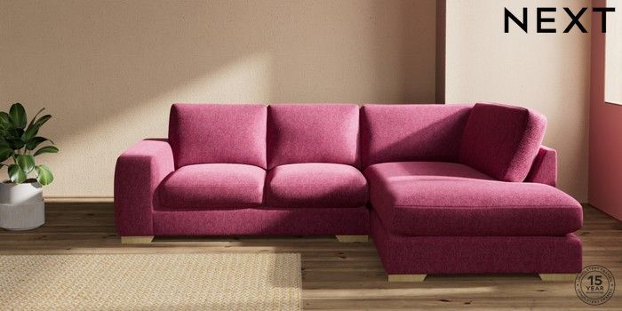 7.2.10 Houghton Deep Sit Medium Corner Chaise - Right Hand Cotswold Chenille Dark Raspberry Pink Large Square Angle - Light | Made Click here to use our website with more accessibility support, for example screen readers