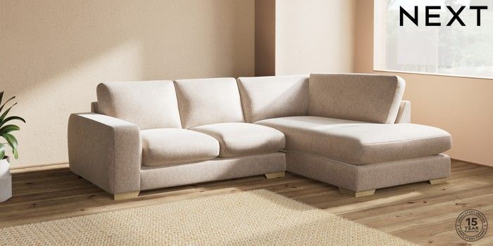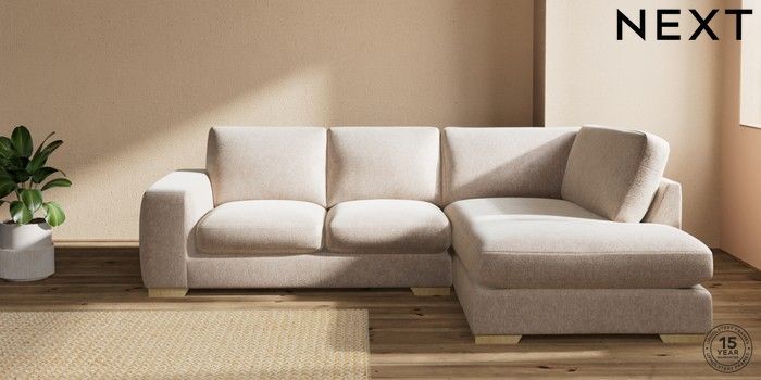 7.2.10 Houghton Deep Sit Medium Corner Chaise - Right Hand Cotswold Chenille Light Natural Large Square Angle - Light | Made Click here to use our website with more accessibility support, for example screen readers