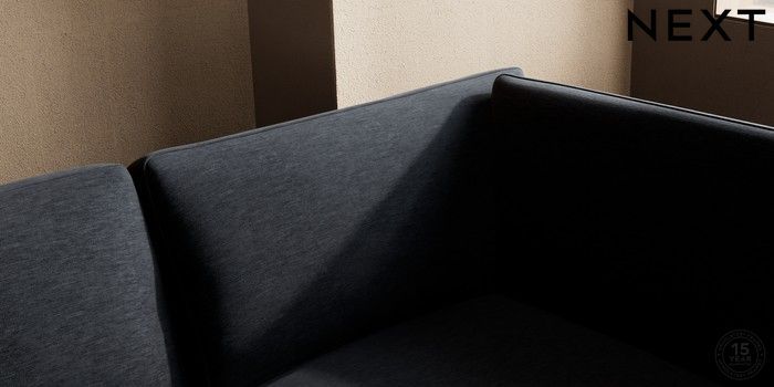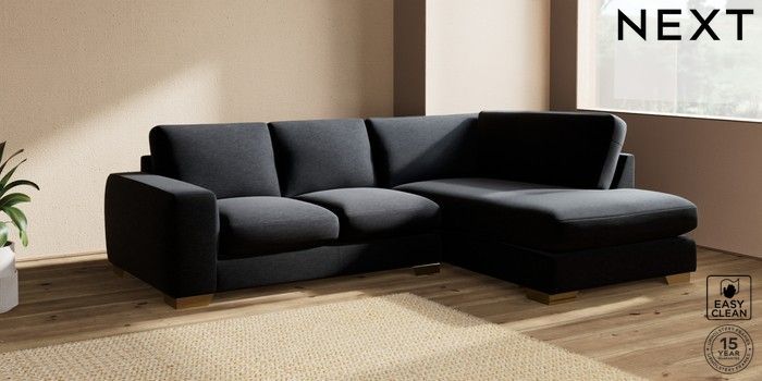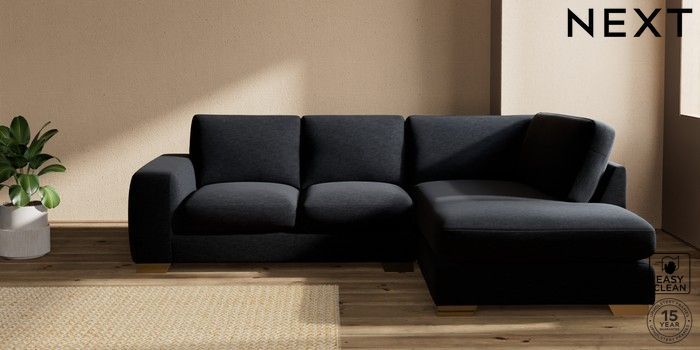 7.2.10 Houghton Deep Sit Medium Corner Chaise - Right Hand Fine Chenille Easy Clean Black Large Square Angle - Brushed Brass | Made Click here to use our website with more accessibility support, for example screen readers