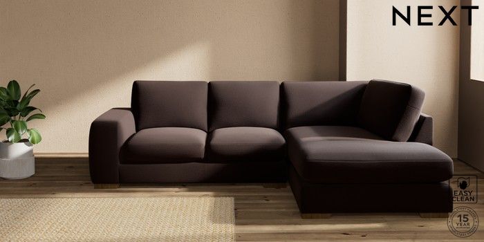 7.2.10 Houghton Deep Sit Medium Corner Chaise - Right Hand Fine Chenille Easy Clean Chocolate Brown Large Square Angle - Mid | Made Click here to use our website with more accessibility support, for example screen readers