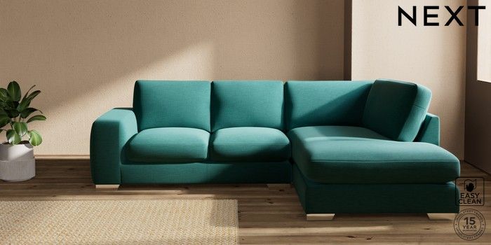 7.2.10 Houghton Deep Sit Medium Corner Chaise - Right Hand Fine Chenille Easy Clean Dark Juniper Green Large Square Angle - Chrome Metal | Made Click here to use our website with more accessibility support, for example screen readers