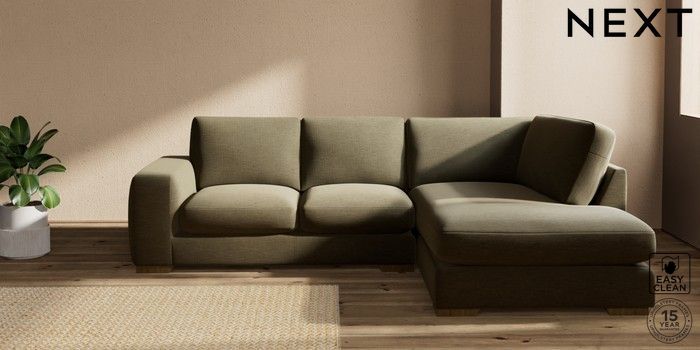 7.2.10 Houghton Deep Sit Medium Corner Chaise - Right Hand Fine Chenille Easy Clean Dark Moss Green Large Square Angle - Mid | Made Click here to use our website with more accessibility support, for example screen readers