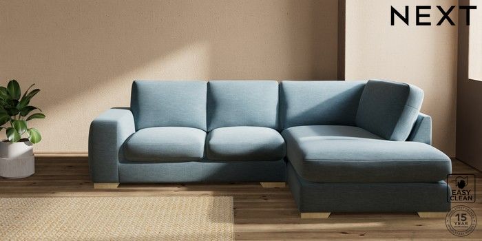 7.2.10 Houghton Deep Sit Medium Corner Chaise - Right Hand Fine Chenille Easy Clean Mid Blue Large Square Angle - Light | Made Click here to use our website with more accessibility support, for example screen readers
