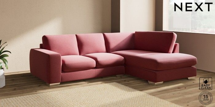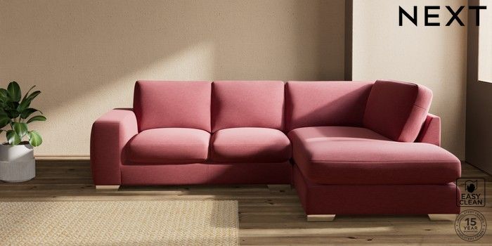 7.2.10 Houghton Deep Sit Medium Corner Chaise - Right Hand Fine Chenille Easy Clean Mid Pink Large Square Angle - Chrome Metal | Made Click here to use our website with more accessibility support, for example screen readers