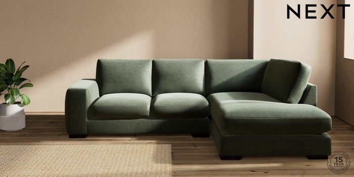 7.2.10 Houghton Deep Sit Medium Corner Chaise - Right Hand Luxe Chenille Mid Green Large Square Angle - Dark | Made Click here to use our website with more accessibility support, for example screen readers