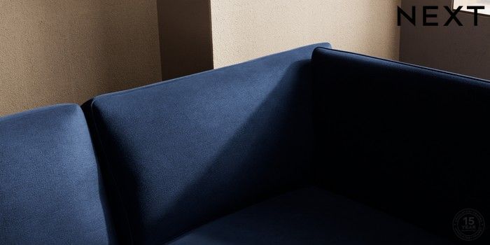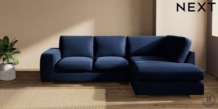 7.2.10 Houghton Deep Sit Medium Corner Chaise - Right Hand Luxe Chenille Navy Blue Large Square Angle - Brushed Brass | Made Click here to use our website with more accessibility support, for example screen readers