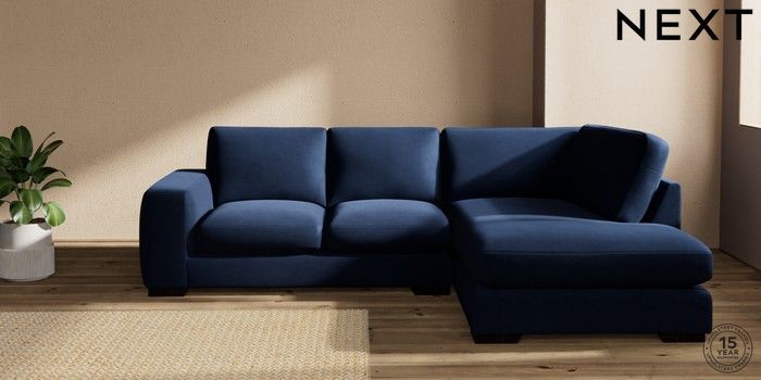 7.2.10 Houghton Deep Sit Medium Corner Chaise - Right Hand Luxe Chenille Navy Blue Large Square Angle - Dark | Made Click here to use our website with more accessibility support, for example screen readers