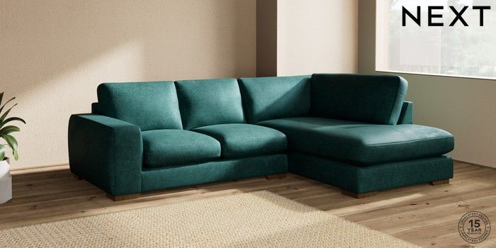 7.2.10 Houghton Deep Sit Medium Corner Chaise - Right Hand Plush Chenille Dark Teal Green Large Square Angle - Mid | Made Click here to use our website with more accessibility support, for example screen readers
