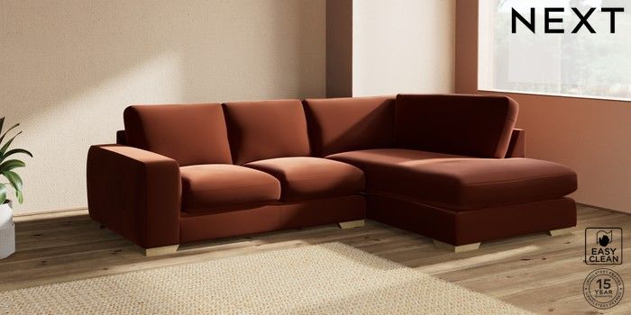 7.2.10 Houghton Deep Sit Medium Corner Chaise - Right Hand Plush Velvet Easy Clean Ginger Orange Large Square Angle - Light | Made Click here to use our website with more accessibility support, for example screen readers