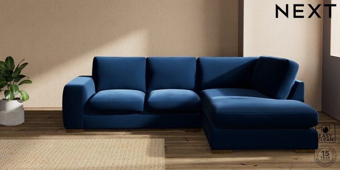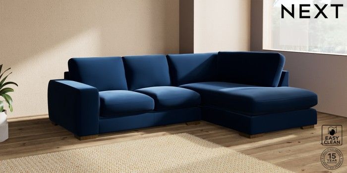 7.2.10 Houghton Deep Sit Medium Corner Chaise - Right Hand Plush Velvet Easy Clean Navy Blue Large Square Angle - Mid | Made Click here to use our website with more accessibility support, for example screen readers