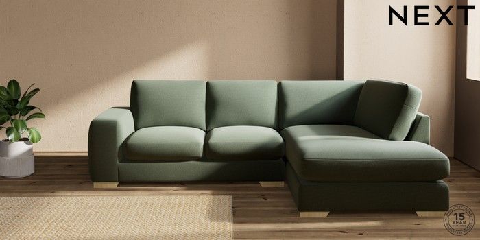 7.2.10 Houghton Deep Sit Medium Corner Chaise - Right Hand Relaxed Linen Look Dark Green Large Square Angle - Light | Made Click here to use our website with more accessibility support, for example screen readers