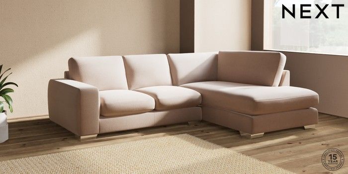7.2.10 Houghton Deep Sit Medium Corner Chaise - Right Hand Relaxed Linen Look Mid Natural Large Square Angle - Chrome Metal | Made Click here to use our website with more accessibility support, for example screen readers