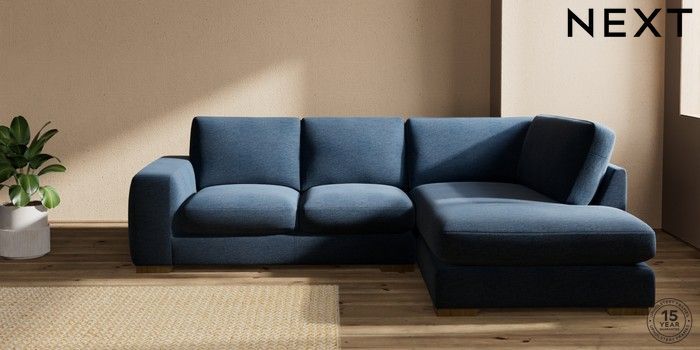 7.2.10 Houghton Deep Sit Medium Corner Chaise - Right Hand Ripple Chenille Dark Blue Large Square Angle - Mid | Made Click here to use our website with more accessibility support, for example screen readers