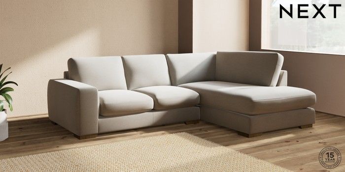 7.2.10 Houghton Deep Sit Medium Corner Chaise - Right Hand Ripple Chenille Light Natural Large Square Angle - Mid | Made Click here to use our website with more accessibility support, for example screen readers