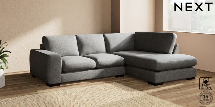 7.2.10 Houghton Deep Sit Medium Corner Chaise - Right Hand Tweedy Blend Easy Clean Dark Grey Large Square Angle - Dark | Made Click here to use our website with more accessibility support, for example screen readers