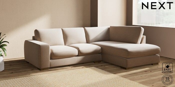 7.2.10 Houghton Deep Sit Medium Corner Chaise - Right Hand Tweedy Blend Easy Clean Light Dove Natural Large Square Angle - Mid | Made Click here to use our website with more accessibility support, for example screen readers
