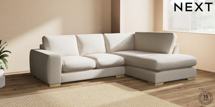 7.2.10 Houghton Deep Sit Medium Corner Chaise - Right Hand Tweedy Chenille Oyster Large Square Angle - Light | Made Click here to use our website with more accessibility support, for example screen readers