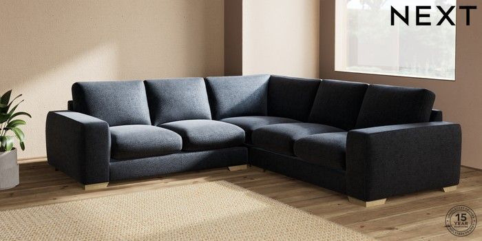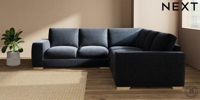 7.2.10 Houghton Deep Sit Medium Corner Sofa - Universal Boucle Chenille Dark Slate Blue Large Square Angle - Light | Made Click here to use our website with more accessibility support, for example screen readers