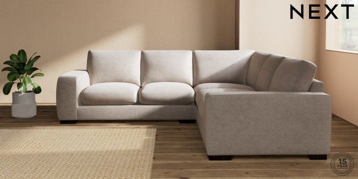 7.2.10 Houghton Deep Sit Medium Corner Sofa - Universal Boucle Chenille Light Natural Large Square Angle - Dark | Made Click here to use our website with more accessibility support, for example screen readers
