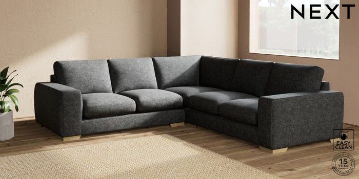 7.2.10 Houghton Deep Sit Medium Corner Sofa - Universal Boucle Weave Easy Clean Charcoal Grey Large Square Angle - Light | Made Click here to use our website with more accessibility support, for example screen readers
