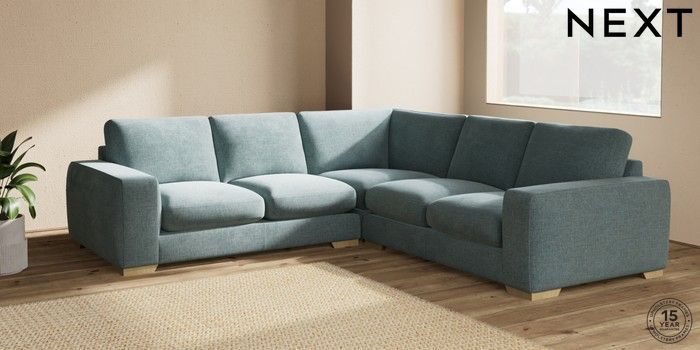 7.2.10 Houghton Deep Sit Medium Corner Sofa - Universal Chunky Chenille Light Teal Green Large Square Angle - Light | Made Click here to use our website with more accessibility support, for example screen readers